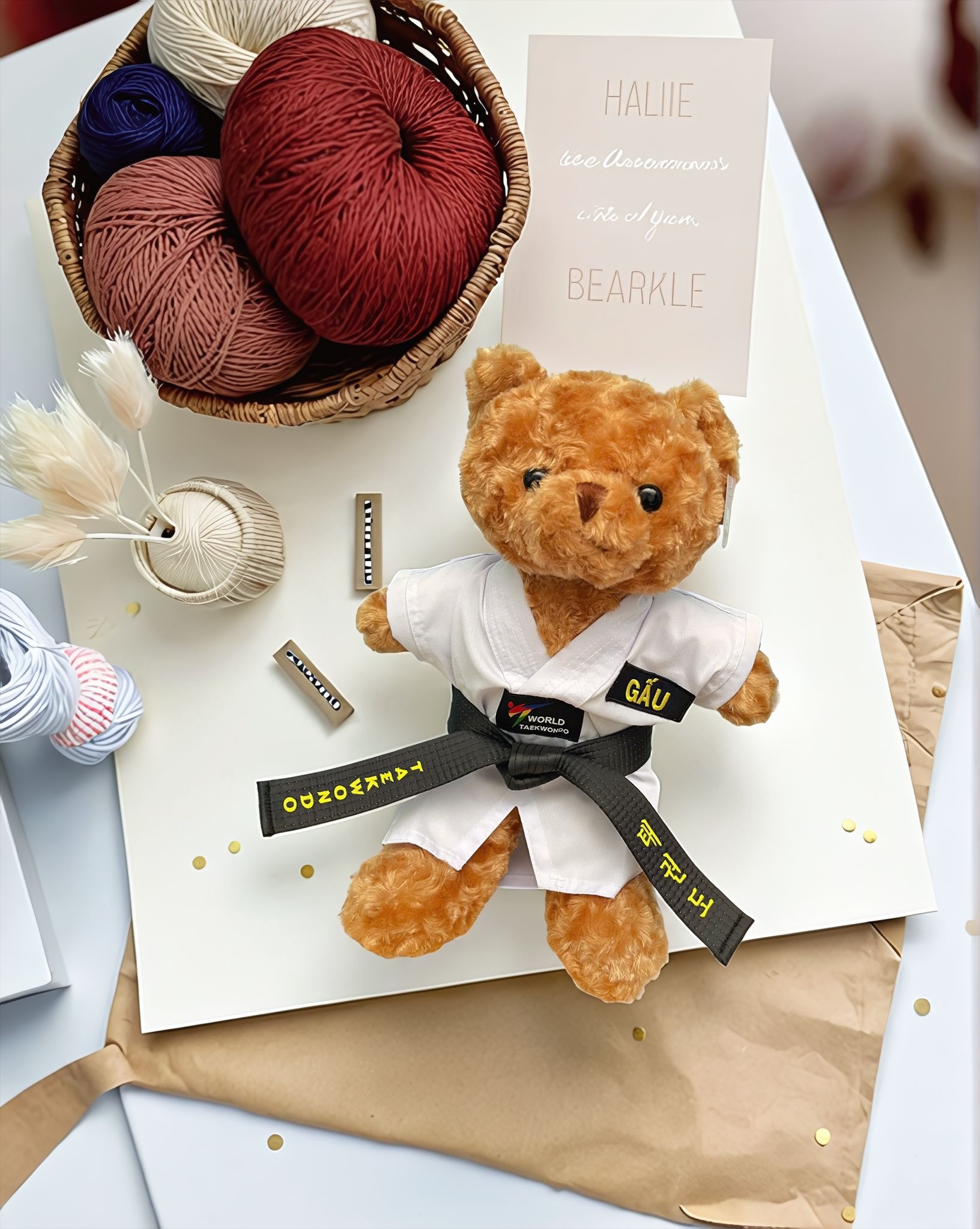🎁 GẤU MẶC VÕ PHỤC TAEKWONDO màu trắng – MÓN QUÀ ĐẦY Ý NGHĨA 🎉